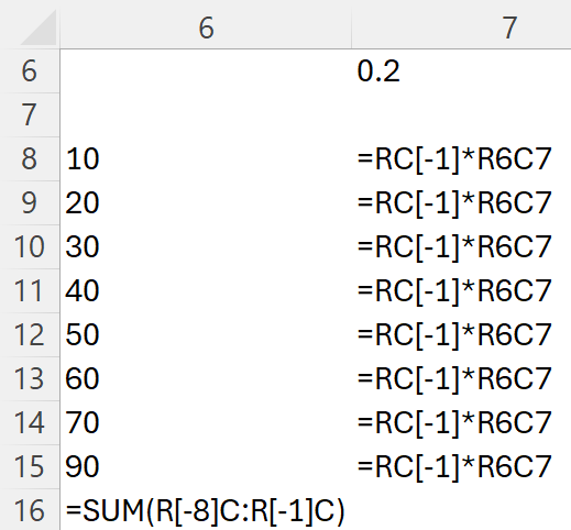 Another reason to know this notation is that if you record a VBA macro and input a formula, Visual Basic will put it in RC notation no matter how you are looking at the formulas on the worksheet